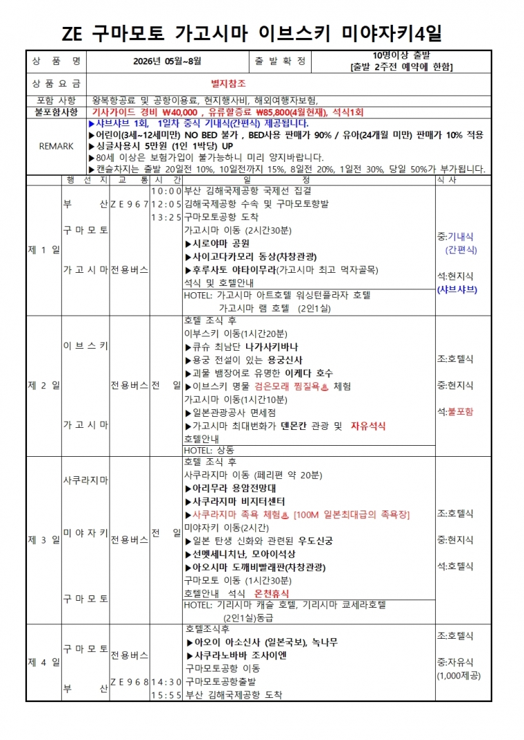 Ãâ¹ßÀÏ 10ÀÏÀü±îÁö(19ÀÏ~10ÀÏ) Ãë¼Ò½Ã : ¿©Çà¿ä±ÝÀÇ 15%¹è»ó